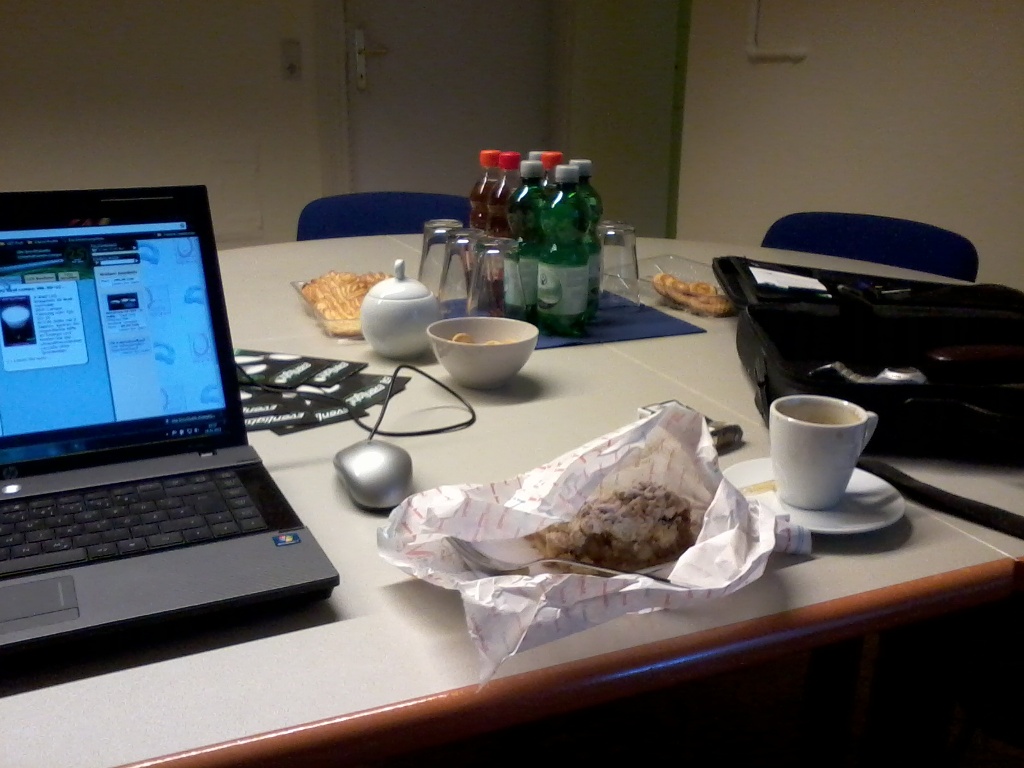 An apple strudel, coffee, begins a working